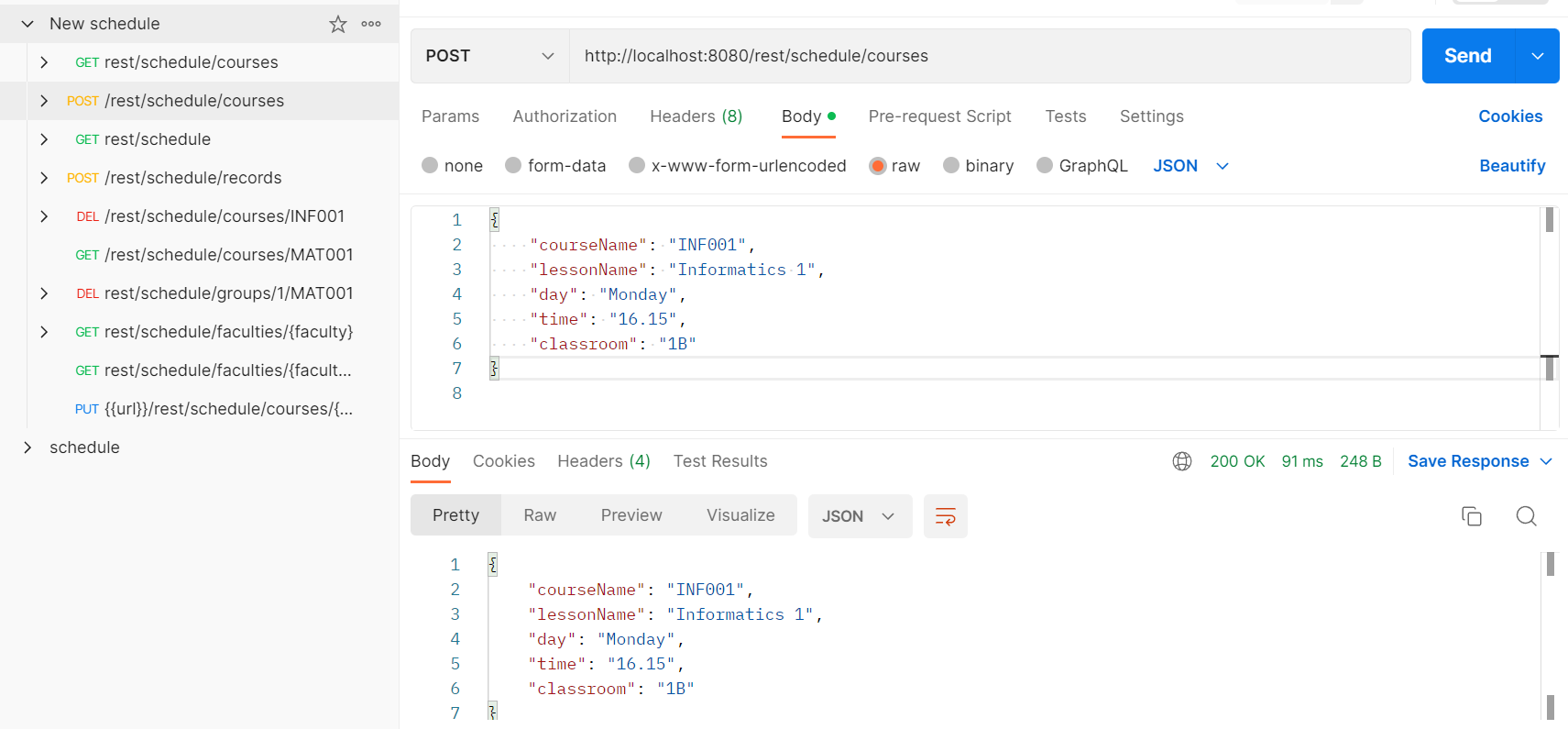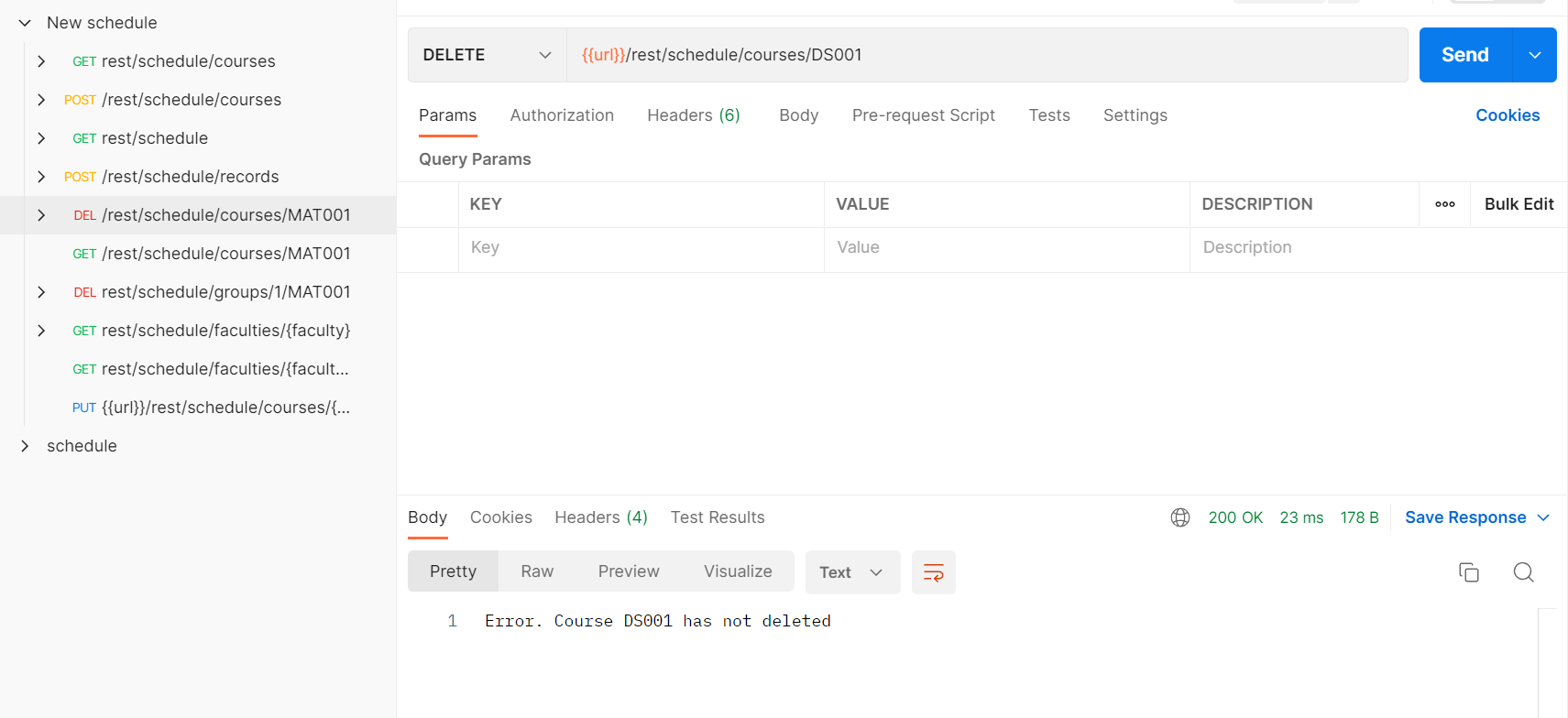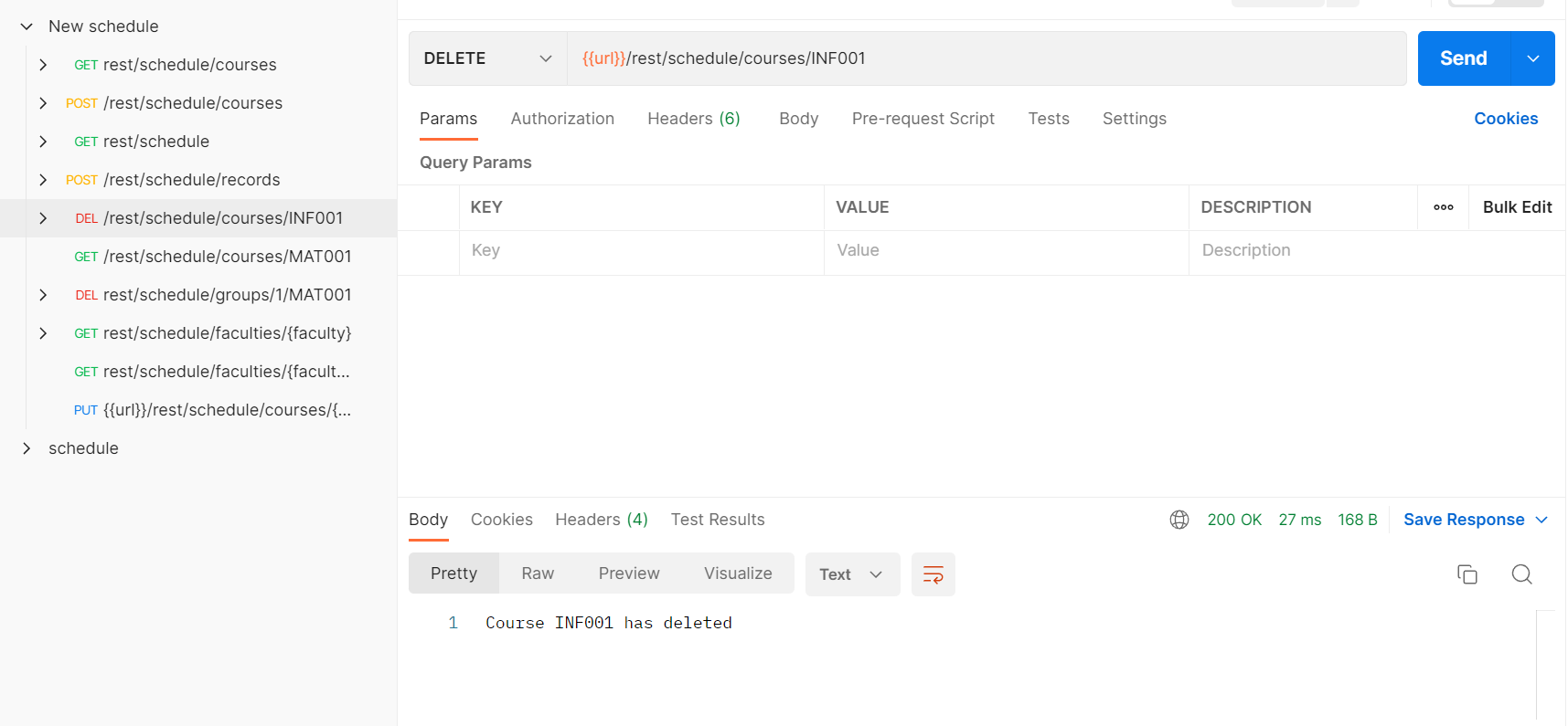 Post deleted coursePostman client written in Client.postman_collection.json in repository. I didn't follow any tutorial to create this project. I used the knowledge I gained during my studies. You can download and see the code.